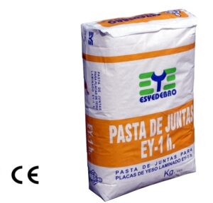 La pasta de fraguado EY-1h. está especialmente indicada para el relleno y acabado de las juntas de placa de yeso laminado con cinta de papel microperforado.