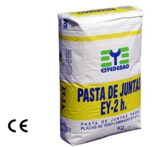 La pasta de fraguado EY-2h. está especialmente indicada para el relleno y acabado de las juntas de placa de yeso laminado con cinta de papel microperforado.