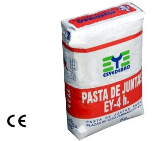 La pasta de fraguado EY-4h. está especialmente indicada para el relleno y acabado de las juntas de placa de yeso laminado con cinta de papel microperforado.